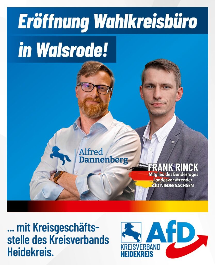AfD in Walsrode: Alfred Dannenberg und Frank Rinck eröffnen Wahlkreisbüro am Wiener Platz