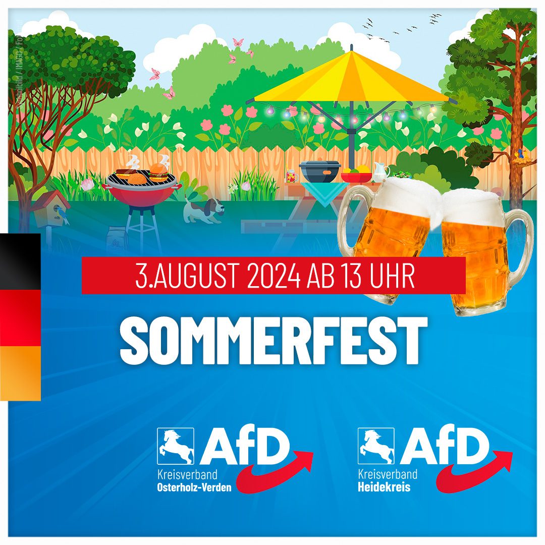 Wenn sogar der Himmel BLAU ist: 😉 Gemeinsames Sommerfest der AfD Kreisverbände Heidekreis und Verden-OHZ bei bestem Wetter in schönem Ambiente am Rande des Allertals. Gute Stimmung und auch hier gilt: Wir werden immer mehr.